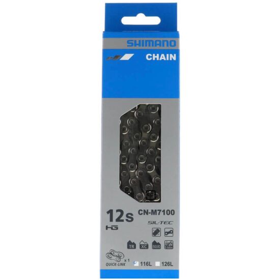 Η αλυσίδα M7100 παρέχει βελτιωμένη συγκράτηση της αλυσίδας χάρη σε ένα εκτεταμένο τμήμα της εσωτερικής πλάκας. Η νέα αλυσίδα διαθέτει συναρμολόγηση γρήγορης σύνδεσης και επεξεργασία SIL-TEC για εκτεταμένη αντοχή εκτός δρόμου.